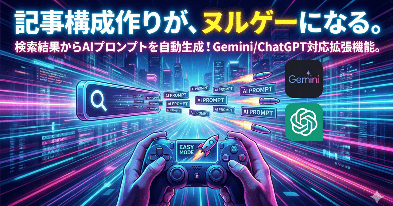 - Google検索上位10サイトの見出しを自動抽出してAI向けプロンプトを生成する「見出し抽出・記事構成」